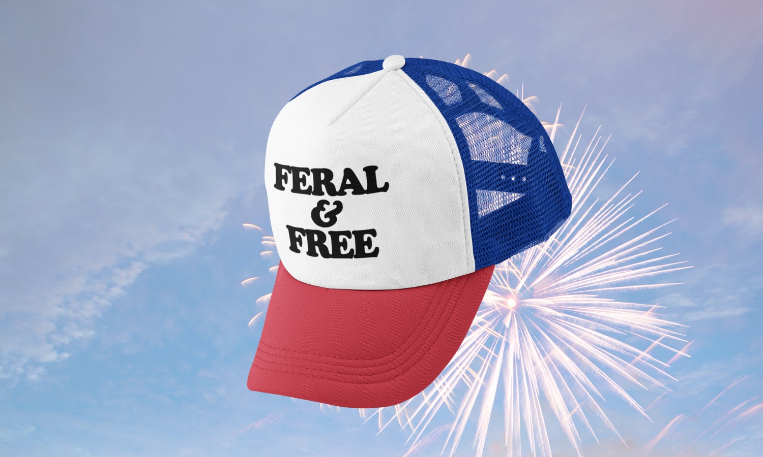 🧡Celebrate Independence Day in style with our vibrant 4th of July themed Feral & Free custom snapback trucker hat. This stylish cap is perfect for showing off your patriotic spirit at BBQs, parades, fireworks displays, the beach, the lake, and at any other summer festivities. Cover up any bad hair day and make a fashion statement with this practical accessory. Make your friends laugh when you wear it out or gift one to your mom, dad, brother, sister, boyfriend, girlfriend, wife, husband, or friend who loves the Fourth of July. Add a touch of Americana to your wardrobe this 4th of July with our eye-catching trucker hat. Order now and be ready to shine bright in the sea of red, white, and blue!