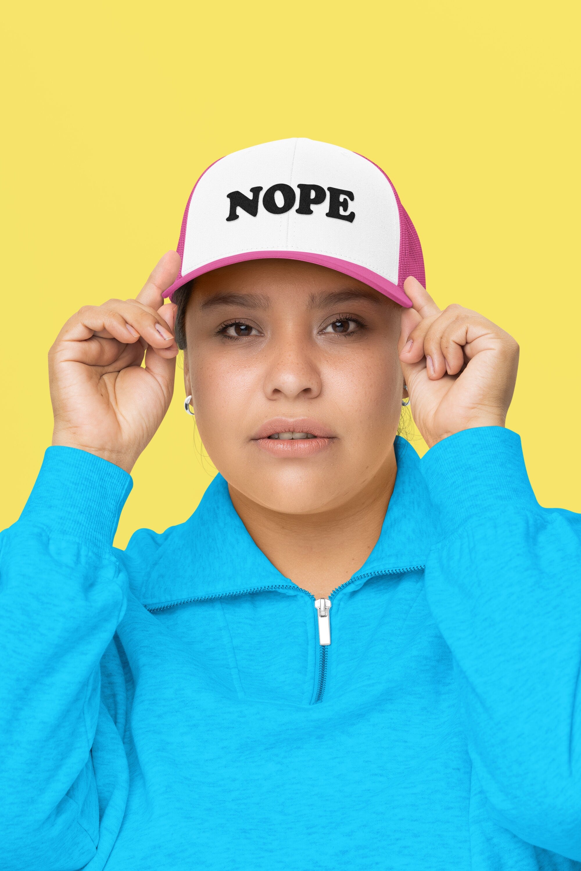 🧡This NOPE custom snapback trucker hat is great for any occasion. Full of style, comfort, and laughs, it's perfect to wear to the beach, birthdays, parties, reunions, brunches, cruises, vacations, festivals, concerts, camping trips, and more. Cover up any bad hair day and make a fashion statement with this practical accessory. Make your friends laugh when you wear it out or gift one to friend whose favorite word is "nope".